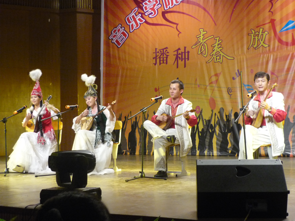 大膽創新、開門辦學、充分利用國內外教育資源,是音樂學院實現跨越式發展的有效途徑。近年來,學院先后聘請了嚴良堃、于潤洋、楊鴻年、樊祖蔭、李松、迪麗拜爾、金湘、劉賓、陳銘道、管建華、閻惠昌、王建民、阿依吐拉、李毓珊、江東、迪麗娜爾·阿布都拉、努斯來提·瓦吉丁、劉剛、王蕾、何曉兵、項陽等幾十位國內外著名學者和音樂舞蹈家長期擔任客座教授,舉辦了近百場學術交流報告。學院先后聘請了幾十位國內外著名學者和藝術家長期擔任客座教授。同時邀請民間藝術大師走進課堂。學校開放式的辦學模式已經形成,在藝術實踐中實施素質教育培養具有“雙重音樂能力”的表演、教育人才已初顯成就。