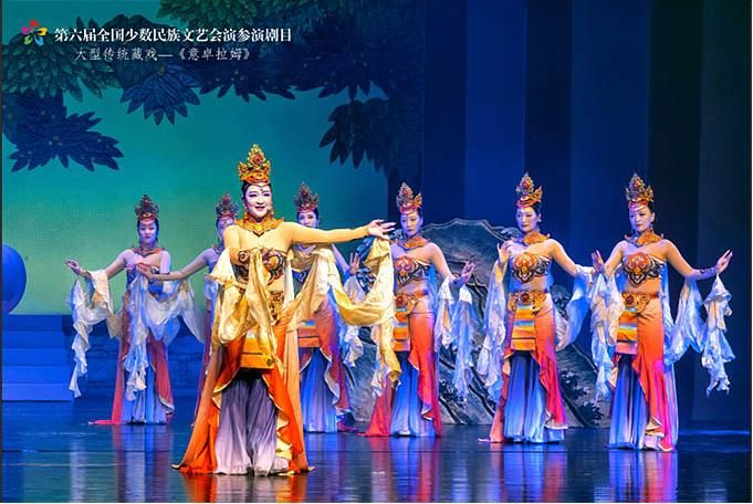9月14日,作為第六屆全國少數(shù)民族文藝會演參演劇目,由青海省選送、青海省藏劇團(黃南藏族自治州民族歌舞劇團)創(chuàng)作演出的藏戲《意卓拉姆》在央視網(wǎng)和國家民委門戶網(wǎng)站進行演播。該劇講述了傳說中的仙女意卓拉姆與人間的諾桑王子相愛,歷經(jīng)挫折與磨難后終成眷屬的愛情故事,表現(xiàn)出意卓拉姆對愛情的忠貞不渝和諾桑王子堅韌不拔的意志。