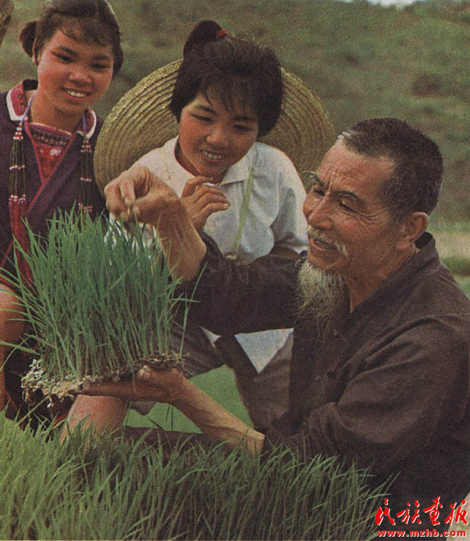 1980年1月7日,在廣西宜州合寨村,當時的大隊黨支部書記蒙寶亮召集了黨員干部和村民代表,經過合議,通過群眾選舉成立“村委會”。1982年,“村委會”這一組織形式被寫進了修改后的憲法正如安徽鳳陽小崗村的“一包”改變了中國農村的經濟命運一樣,廣西宜州合寨村的“一選”則改變了中國農村的基層民主格局。在村委會的帶領下,農民群眾積極投身農業生產,在春天里育新苗(中國民族圖片庫資料)