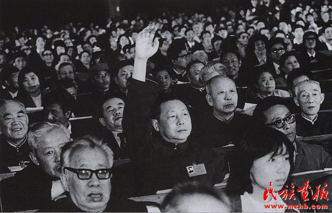 改革開放以來,黨和國家事業取得了歷史性成就,民主法治建設邁出重大步伐。圖為1986年4月12日,在六屆全國人大四次會議上一位人大代表投下了反對票?!睹褡瀹媹蟆?008年第12期