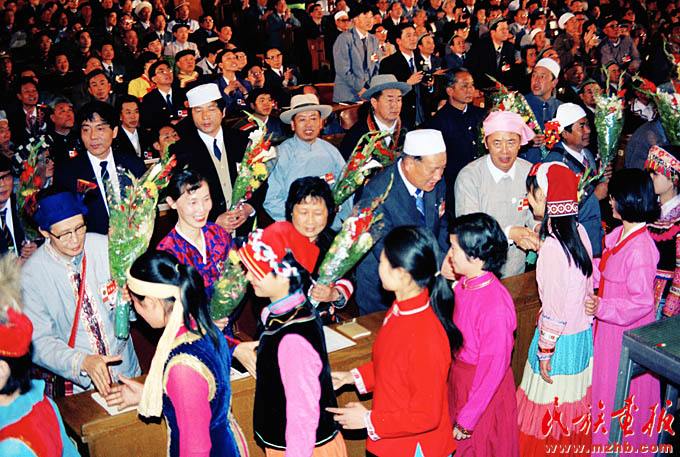 1988年4月25日至29日,首次全國民族團結進步表彰大會在北京舉行,圖為大會現場.《民族畫報》1988年第8期
