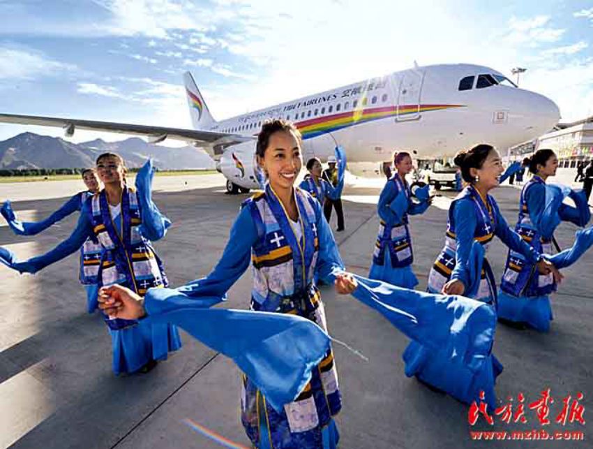 西藏已經(jīng)建成使用的機(jī)場(chǎng)有拉薩貢嘎國(guó)際機(jī)場(chǎng)、阿里昆莎機(jī)場(chǎng)、昌都邦達(dá)機(jī)場(chǎng)、日喀則和平機(jī)場(chǎng)和林芝米林機(jī)場(chǎng)。西藏還擁有自己的航空公司,圖為西藏航空有限公司成立暨首航儀式