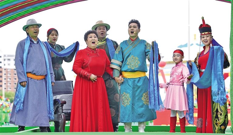 老一輩烏蘭牧騎藝術家德德瑪老師攜手幾代烏蘭牧騎演員放聲歌唱。