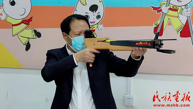 江華瑤族自治縣委書記段貴建體驗射弩。