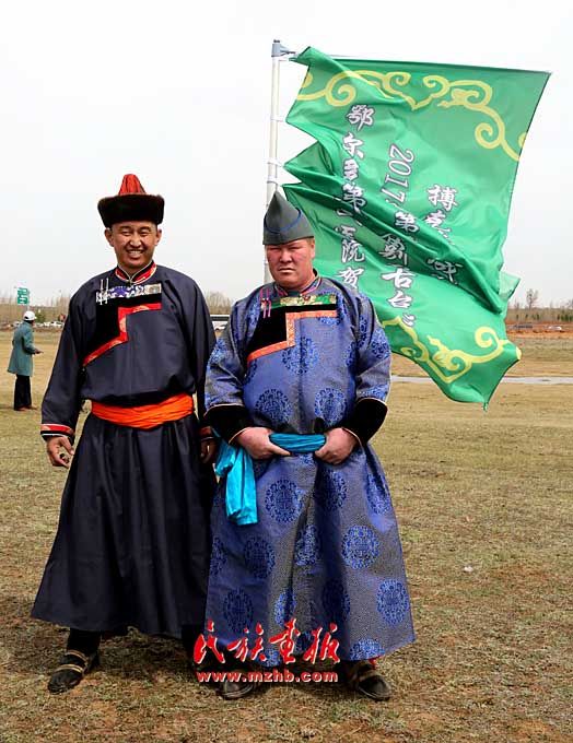 巴音昌呼格草原舉行。圖為被授予“將嘎”(彩帶)的鄂爾多斯搏克們