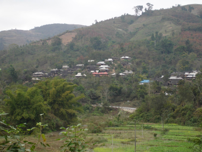 巴卡基諾族文化生態村是民族文化生態村建設項目五個試點村之一,所在的巴卡小寨,是位于云南省西雙版納州景洪市基諾山基諾族鄉與勐臘縣勐倫鎮接壤地帶的一個基諾族自然村寨,隸屬于景洪市基諾族鄉巴卡行政村。2006年2月27日,筆者從景洪市出發經由勐臘縣睦倫鎮進入巴卡基諾族文化生態村進行為期三天的考察。在睦倫鎮搭乘摩的沿著213國道翻過山口前行約30分鐘就到達。進入村口巴卡小寨,村寨依山而建,位于公路上方約300米,房子緊挨房子排滿了半個山腰。據文獻資料顯示,巴卡小寨是1974年才由巴卡老寨遷出建立的新寨。筆者考察時,村子有62戶,270余人,居民中除了漢族2人,哈尼族2人,傣族、拉祜族各1人外,全部為基諾族。在213國道旁位于進入巴卡小寨的路口,立有三個牌子:一個是丁字形水泥標牌,用拼音和漢字書寫“巴卡小寨”,顯然是213國道原本設置的標牌;一個是黑底白字半圓木頭標牌,用漢英兩種文字寫著“巴卡基諾族文化生態村”、“美國福特基金會資助”,這是文化生態村建設產物;另一個是白色瓷磚鑲邊的正方形水泥標牌,用漢英兩種文字自上而下書寫“聯合國大學/全球環境基金”“云南農業生物多樣性保護與可持續發展”“西雙版納實驗示范點”,項目實施單位是中國科學院西雙版納熱帶植物園和西雙版納國家級自然保護區管理局勐侖保護所,應該是文化生態村建設將巴卡小寨名聲提升之后獲得資源的見證。