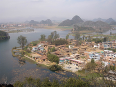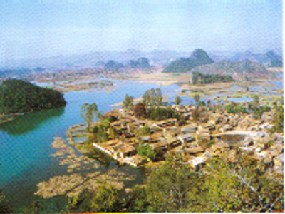 在一次學術會議上,筆者請教了首倡并主導“民族文化生態村”試點建設的尹紹亭教授,得知在他們首期的五個試點村落建設中,仙人洞村是比較成功的,于是在本項目的調查中,仙人洞村成為重點考察的對象之一。“仙人洞彝族文化生態村”位于云南丘北縣城西北16公里的普者黑湖畔。“普者黑”為當地彝族撒尼語,意為“魚蝦多的湖潭”。普者黑實際是由眾多湖泊、河流構成,總面積達165平方公里,已經開發成由5個景區、56個景點組成的滇東南國家級著名旅游景區。