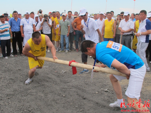 頂杠是赫哲族傳統體育項目,節日活動期間舉行了頂杠比賽