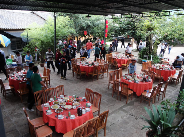 漫步在村道里,可以看見古色流香白族門樓,門樓寫“靈山一家”、“鳳尾居”、“古樹人家”、“松風園”等牌匾,每家都各具特色,無不散發出濃濃農家風味和優雅文化氣息。在這些集餐飲、休閑、住宿為一體的白族特色農家樂,游客可以品嘗到當地特產野生冷菌、雞 、樹花、香竹筍、青蛙皮、金雀花,也可以躺在數百年的古板栗樹下的搖椅中,細細品味‘心靜秋澄月,情空云淡天’的意境。