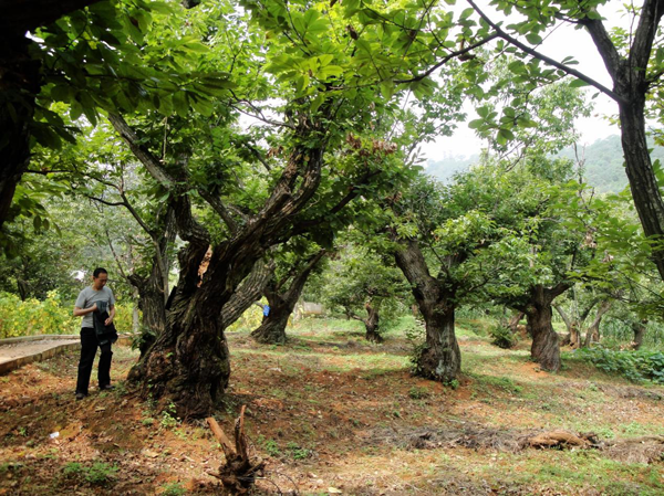 一是:徐霞客在農歷八月十五的時候來到尋甸,第一次嘗到了炒板栗,認為這是人間美味的他,順手抓了一把混雜生熟的栗子就放進兜里。步行數月后,在臘月來到了當時的鳳尾村(寺前村),受到熱情款待的徐霞客身上的盤纏不多了,為了表達謝意,就把栗子送給了農戶去播種,因為栗子有些受潮發霉,所以僅僅成活了幾棵。但是到了現在,以及連成了一片古樹林。