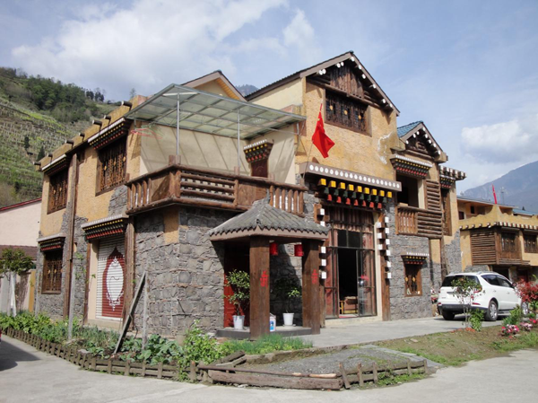 作為災后重建的示范工程,與藏家風情園一道,藏寨在承擔民居功能的同時,也是旅游接待的集中區,由于位于三江旅游公路的背側區域,并不為大多數游客所熟知。藏寨生活的異域感、田園詩意般的感受和完善的旅游設施使上、中、下三寨成為三江生態旅游區最宜“散心“的區域。