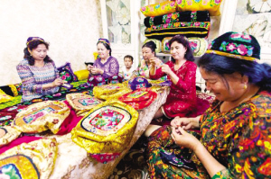 新疆哈密傳統刺繡品牌“密繡”繡娘展示刺繡技藝。 資料圖片