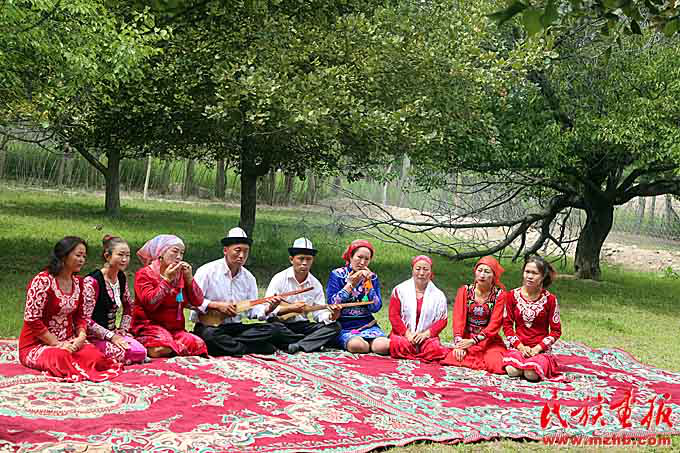據色帕巴依鄉黨委委員阿依木古麗·艾山卡德介紹,該鄉在鄉中心小學專門開設課程教學生學彈庫姆孜琴,并積極舉辦“我為庫姆孜代言”活動,積極培養庫姆孜傳承人。此外,鄉里還專門組建有庫姆孜彈唱隊。“我們利用百日文化廣場和日常的演出走村串巷,積極參加縣宣傳部開展的各項文體活動。今年2月開展的群眾大會,把庫姆孜音樂重新填詞,配合惠民政策宣傳,將傳播民族文化與群眾思想政治工作相結合。”同樣,在烏恰縣吾合沙魯鄉恰提村,當地駐村工作隊積極組織20名返鄉學生開辦“庫姆孜彈唱文藝培訓班”,廣泛調動返鄉大學生加入到文化傳承的行列中。