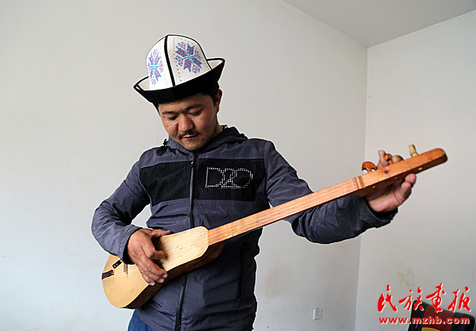走進新疆克孜勒蘇柯爾克孜自治州阿合奇縣色帕巴依鄉色帕巴依村,一排排房屋整齊有序,沿路花壇里開著叫不上名的花,藍天映照下,顏色格外鮮艷。走進一間普通民居,一個柯爾克孜小伙兒正埋頭打磨著一把木質樂器,這正是柯爾克孜族的傳統樂器——庫姆孜。房間里擺著一溜兒木質雕刻的半成品。