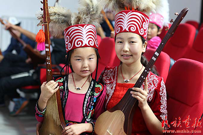 學彈庫姆孜的柯爾克孜族兩姐妹