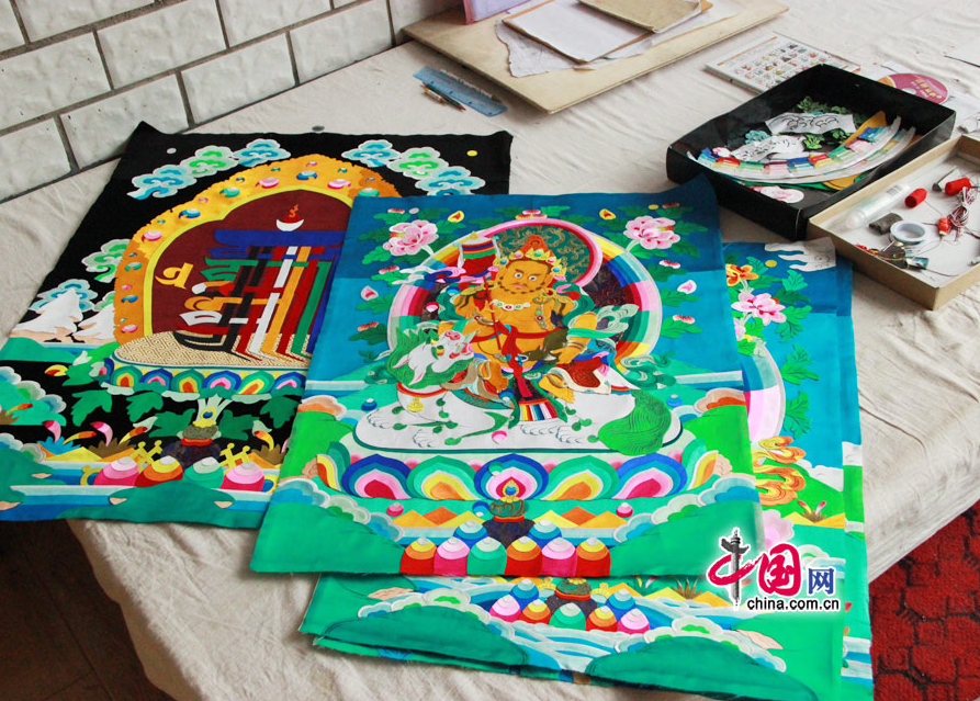 2003年以來,為適應更多消費者的需求,堆繡藝術品市場化的腳步加快了,堆繡所使用的布料品種更加豐富,除了購買現(xiàn)成的布料外,可以通過染色來滿足各種需求;堆繡題材已不再拘泥于佛教故事和佛教人物,在保持了古樸本質的前提下,民間傳統(tǒng)吉祥圖案、花鳥及反映農村現(xiàn)實生活、富有時代特色的題材,拓寬了湟中堆繡的創(chuàng)作空間,更加符合現(xiàn)代審美需求;同時還根據(jù)市場需求開發(fā)出了新產品堆繡中國結、掛歷。