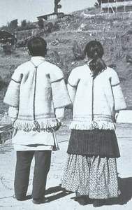 居住:平時(shí)住木房,放牧?xí)r住牧棚。房屋建筑形式特殊,一般都是人字形頂,上蓋魚鱗板(即用斧子劈成的木薄板)。四周用石塊壘成厚墻,就在墻上架梁造樓。大都修建兩層樓房,平均高度約6米左右,樓上一般分隔成三間,分作廚房、宿舍和儲(chǔ)藏室,樓下堆放零星什物或圈牛羊。室內(nèi)陳設(shè)簡(jiǎn)樸,廚房設(shè)在中間,有酥油桶、鋁鍋和各種炊具碗杯等,家家還有一個(gè)用石板砌墊而成的火炕,支架做飯,席地就食。他們注意衛(wèi)生,室內(nèi)清潔明亮。一般家庭都有廁所。