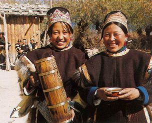 在工布地區(qū),不管是遠(yuǎn)方的來客,還是常來常往的朋友,一踏進(jìn)主人的新家,主人首先端出的是香噴噴的酥油茶。如果是尊貴的客人,還要被請到上座。招待來客時,主人會敬上酥油茶和青稞酒,尤其是青稞酒,主人要兩手棒著,恭敬地送到客人手上,客人喝一口,主人添一次,連續(xù)三次。客人最后一口氣把杯中的酒喝完,這就是通常所說的三口一杯。如果客人推辭,主人還要獻(xiàn)上優(yōu)美動聽的酒歌,以此來表達(dá)主人的熱情和對客人的尊敬,直到客人把杯中的酒喝完為上。手捧酒杯,主人依次要給所有的來客敬上一遍。杯杯醇酒,盛滿了工布人的情和意。那情景,常令在場的人感動不已。