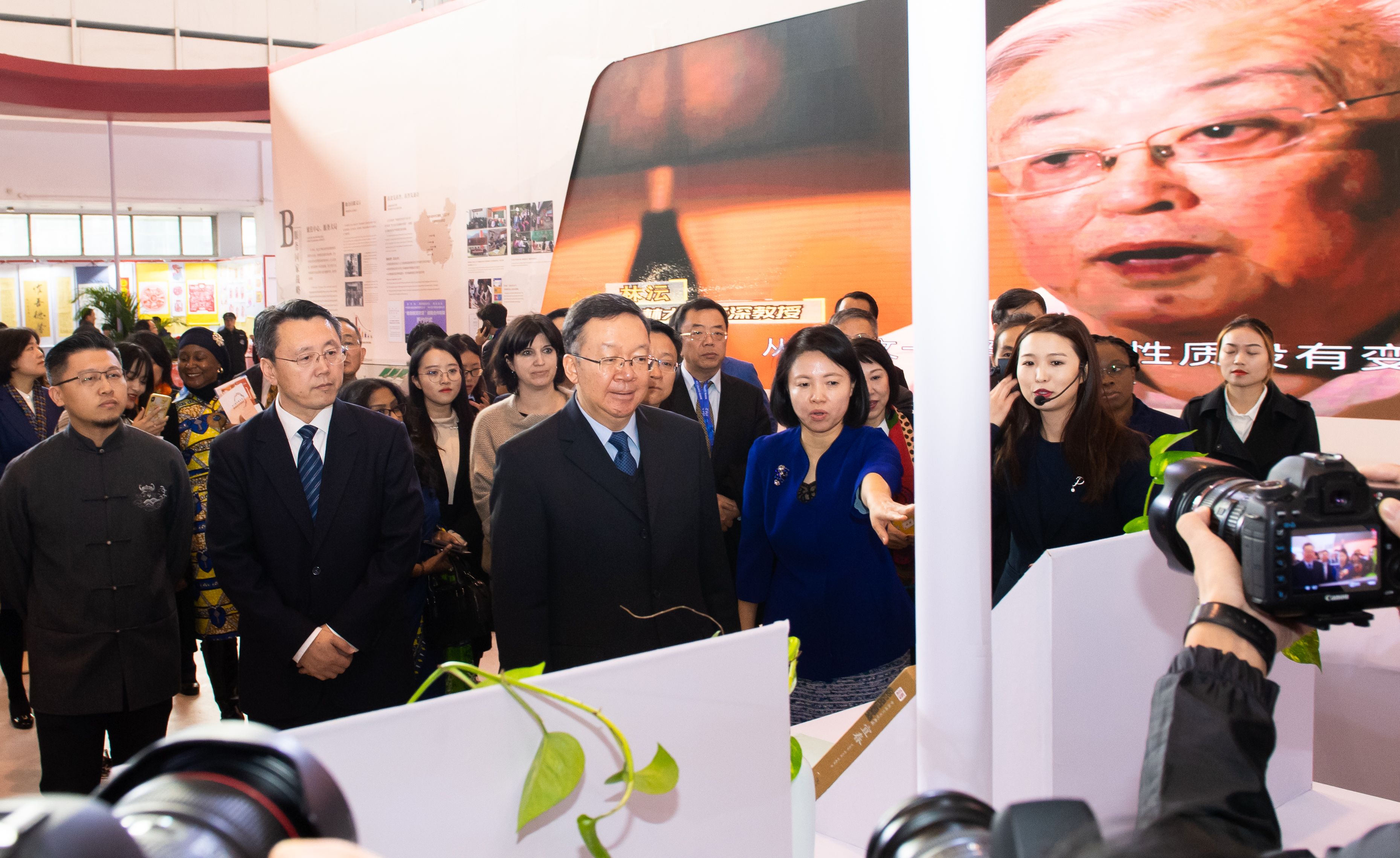 10月25日,教育部副部長、國家語委主任田學軍出席第三屆中國北京國際語言文化博覽主論壇——“語言智能與語言多樣性”國際語言文化論壇開幕式,并在開幕式后赴中國國際展覽中心巡展,在現場聽取了“新中國成立七十周年語言文字事業發展成就展”介紹,參觀了科大訊飛、京津冀協同發展展區、粵港澳大灣區展區、廣西語委展區以及語言科技、語言出版、語言創意展,在語言藝術展演區欣賞到由首都師范大學外國留學生演出的詩詞吟誦,并在成就展”簽名樹”上簽名。