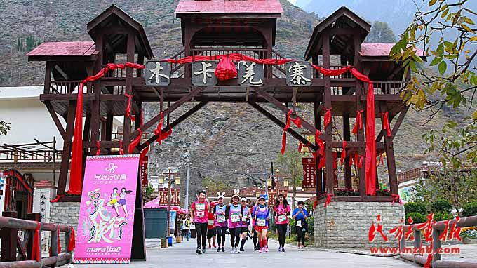 運(yùn)動員經(jīng)過美麗的理縣木卡羌寨。