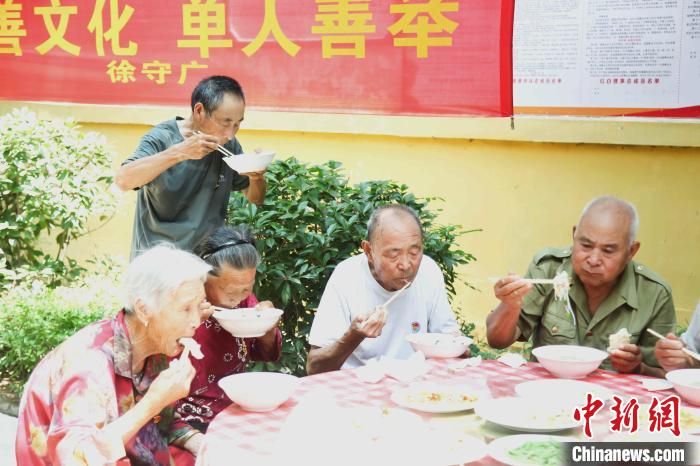 “孝善羊湯宴”將伏羊節推向高潮,當地村莊免費請“孝善人家”代表等“喝伏羊”。 付宏 攝