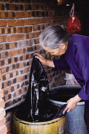“染好后,顏色會掉嗎?”由于過往體驗,我對藍染的穩定性存有懷疑。“好的黑布,要反復染一個多月,做出來的衣服再洗就不容易掉色。可能開始掉一點點,洗兩三次后就不掉了?!秉S奶奶篤定地回答。