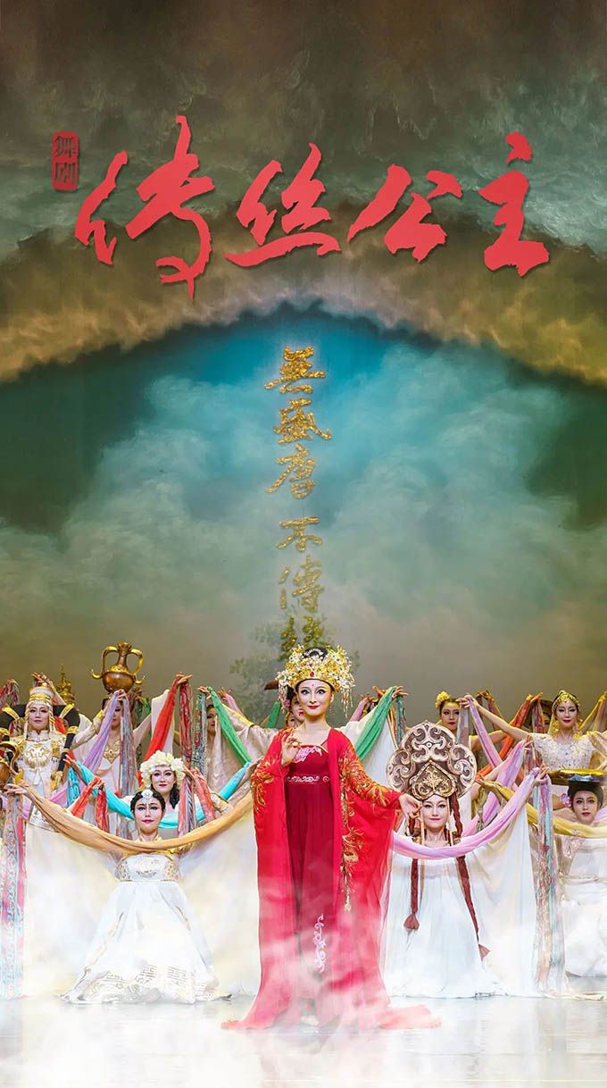 《傳絲公主》以唐朝玄奘《大唐西域記》中“瞿薩旦那國”(今新疆和田地區)一條關于蠶種西傳的史料記載為依據,以新疆丹丹烏里克遺址發掘的唐代木板畫“傳絲公主”的文物遺存為印證,以于闐王子與唐朝公主將東方蠶桑絲綢首傳西域的故事為載體,再現了1300年前我國各民族文化上兼收并蓄,經濟上相互依存,情感上相互親近,在互鑒融通中匯聚成多元一體的中華民族的歷史。