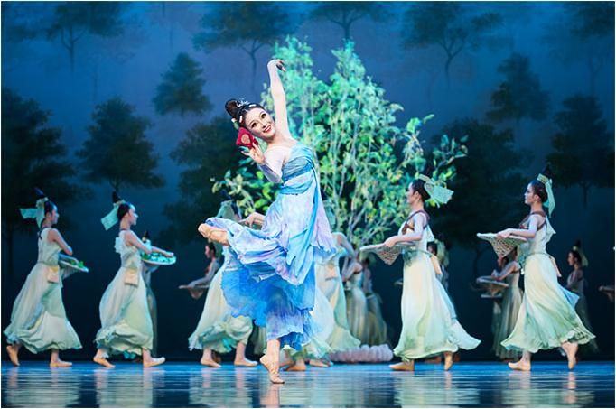 舞劇《傳絲公主》以蠶絲為戲劇元素,以蠶桑女寧兒與于闐王子尉遲的愛情為外在線索,以盛唐時中原與西域的交流往來為隱伏線索,將凄美的愛情故事與壯闊的家國情懷交織在一起,引領觀眾穿越到大唐盛世,感受繁興的絲路文化和豐富多彩的民族風情。
