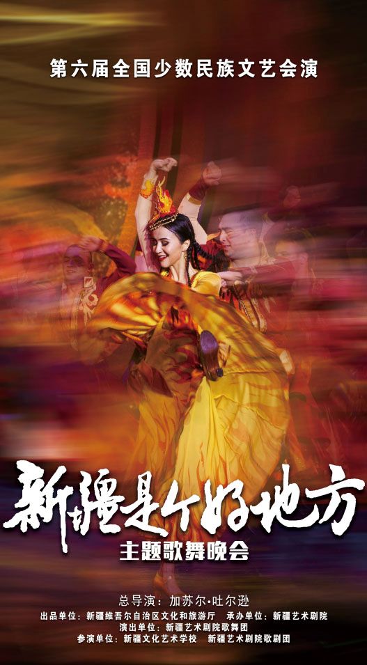 9月11日,由新疆維吾爾自治區(qū)文化和旅游廳策劃指導(dǎo),新疆藝術(shù)劇院統(tǒng)籌打造,新疆藝術(shù)劇院歌舞團創(chuàng)作的主題歌舞晚會《新疆是個好地方》亮相第六屆全國少數(shù)民族文藝會演,在央視網(wǎng)和國家民委門戶網(wǎng)站進行展播,向全國觀眾講述了多彩的新疆、團結(jié)的新疆、大美的新疆。
