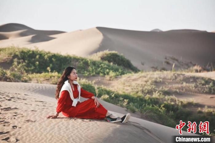 圖為瑪爾健坐在甘肅肅南縣的沙漠一隅,回憶過去,感受家鄉多年來的變化。(資料圖) 瑪爾健供圖