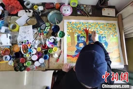 農民畫畫家在作畫 周孫榆 攝