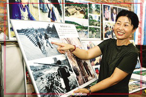 胡亞玲在她的個人攝影展上向觀眾講述照片背后的故事