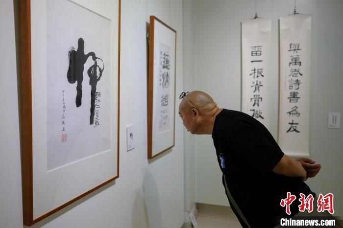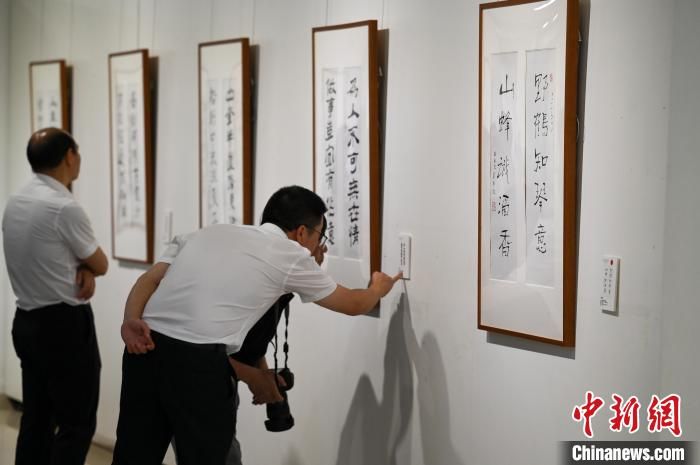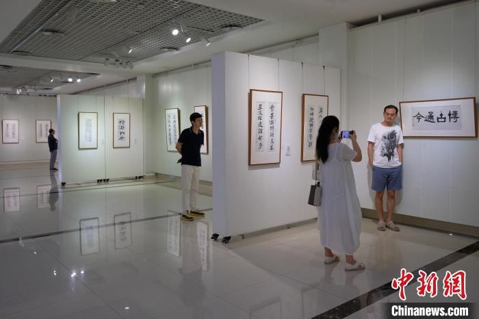 圖為觀眾在書法展上拍照留念?!『闻罾?攝
