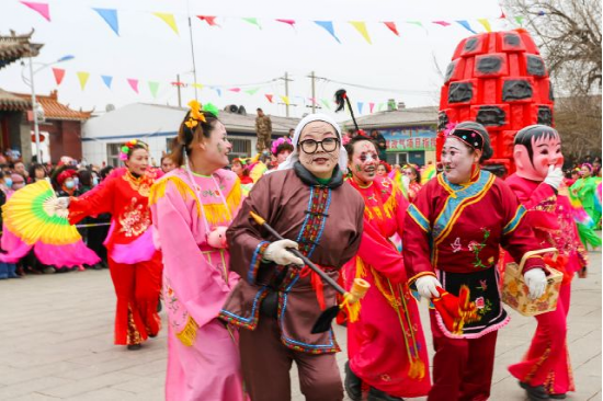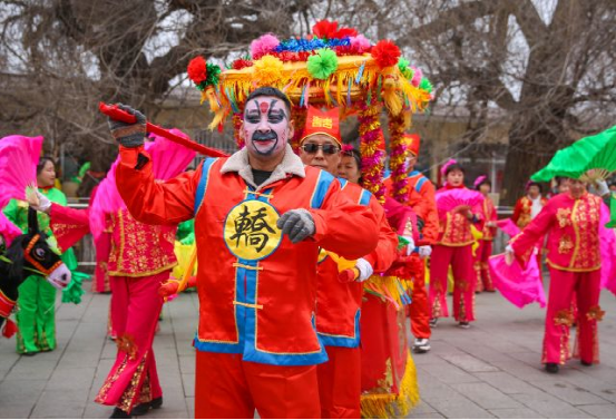 [資1]新城區討思浩村至今仍保留著過“天倉節”的習俗,至今已有兩百多年歷史。每到農歷正月二十五,討思浩村都要舉行象征五谷豐登的民間傳統節日——天倉節。隨著鄉村振興戰略的不斷深入,農民的生活水平也逐步提升,再也不需要“靠天吃飯”的新農民也將對天地的祈禱轉化成了民俗活動。經歷數百年的沿襲,如今“天倉節”這一民俗已成為討思浩村一個地域文化符號,其中精彩紛呈的喜慶氛圍及獨特的民間傳統表演形式很受人們的喜愛。