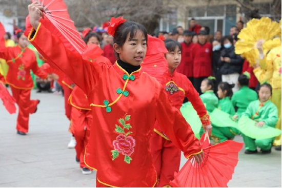 在[資2]讓人流連忘返的民俗演出中,最引人矚目的便是來自討思浩小學的學生們帶來的自“天倉節”祈福儀式演變而成的“天倉舞”表演,孩子們有板有眼的舞蹈動作完全不遜色于專業的演出隊伍,不僅將討思浩特有的傳統民俗淋漓盡致的展現出來,更是對西北農耕文化的有力傳承。據介紹,2018年12月開始,村委會聯合討思浩小學于每周五下午開設了民俗文化特色課,天倉舞傳習、民俗歷史講座等內容的設置,讓孩子們對家鄉的歷史文化更加了解,增添了對家鄉的認同感,也讓保留了幾百年的民俗文化得到了傳承。