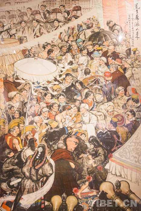 鑒賞展現場,不少前來參觀的畫家都是韓書力的學生或在一定時期曾受其教導。“1973年,我在西藏自治區展覽館見到了韓書力老師,第一次見面我就拜了師。我們一起下鄉,我就給他當導游和翻譯。30幾年來,我一直在學習韓老師的繪畫技法,到現在還是他的學生。韓老師創作《毛主席派人來》時,我就跟在旁邊學習。學到了一些創作獨幅作品的技巧和手法,讓我受用至今。”西藏青年畫家計美赤列說。
