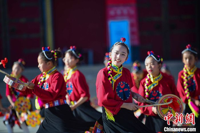 資料圖為西藏自治區(qū)拉薩市城關(guān)區(qū)慈覺林數(shù)十名孩子練習熱巴舞。 記者 貢嘎來松 攝