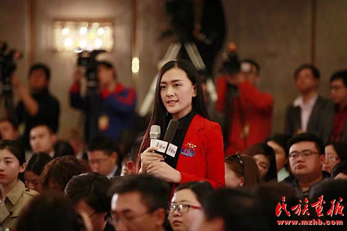 在全國兩會媒體記者會上,王金梅代表中國網現場提問。