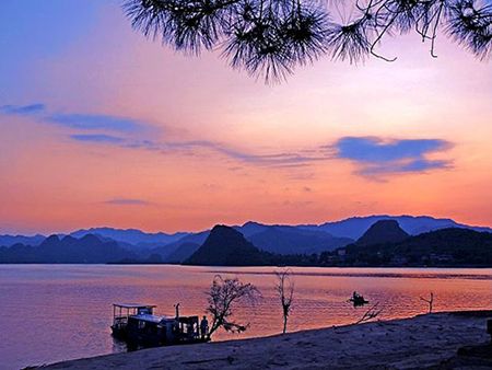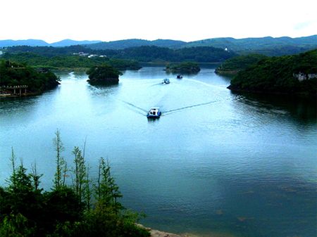 百花湖在朱昌鎮旁,湖中有100多個小島,以湖汊多、島嶼多見勝,遠眺之下,很有幾分江南水鄉的韻味。游覽百花湖的最佳時間是春天,那時百花湖上就會百花盛開,姹紫嫣紅,百花湖也是因此而得名的。景區以湖光山色和巖溶地貌的自然景觀為主體,兼具秀、幽、奇、巧的特色。