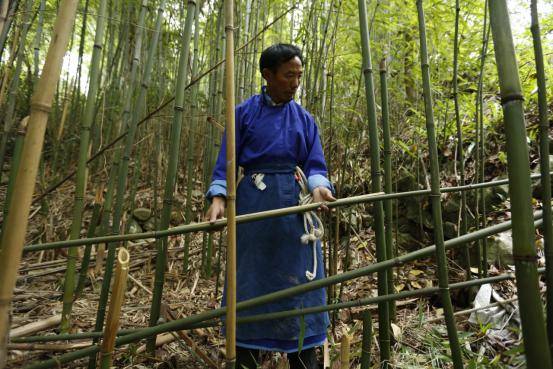 發(fā)音跟笙管的長短有關(guān)系,它必須要配對。如這是六拳的,這一管必須和這一管關(guān)節(jié)是一樣的,所以它們聲音都是一樣的。差一點(diǎn)可以,不能差太多。有時也找不出來。山上長出來的(竹子)不可能完全都是一致的。比如這一對就挺合適的。這一管和這一管是一樣的。不長不短,它的和音就比較好。